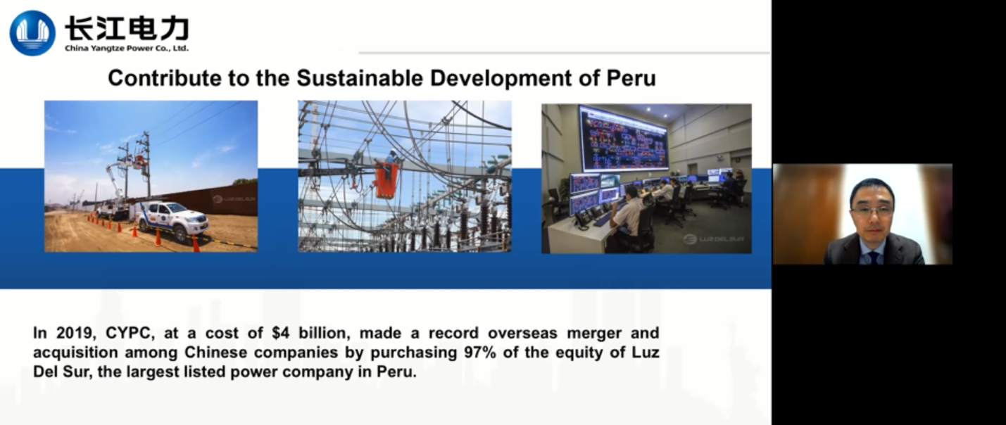 中国长电国际(香港)有限公司总裁薛宁表示,长电集团在应对气候变化方面作出了积极的努力,提出了2023年实现碳达峰,2040年实现碳中和的目标,并将在全球致力于清洁能源的开发。2019年,长电集团收购了秘鲁最大电力公司,集团将服务当地社会,帮助秘鲁更好的发展经济,应对气候变化。