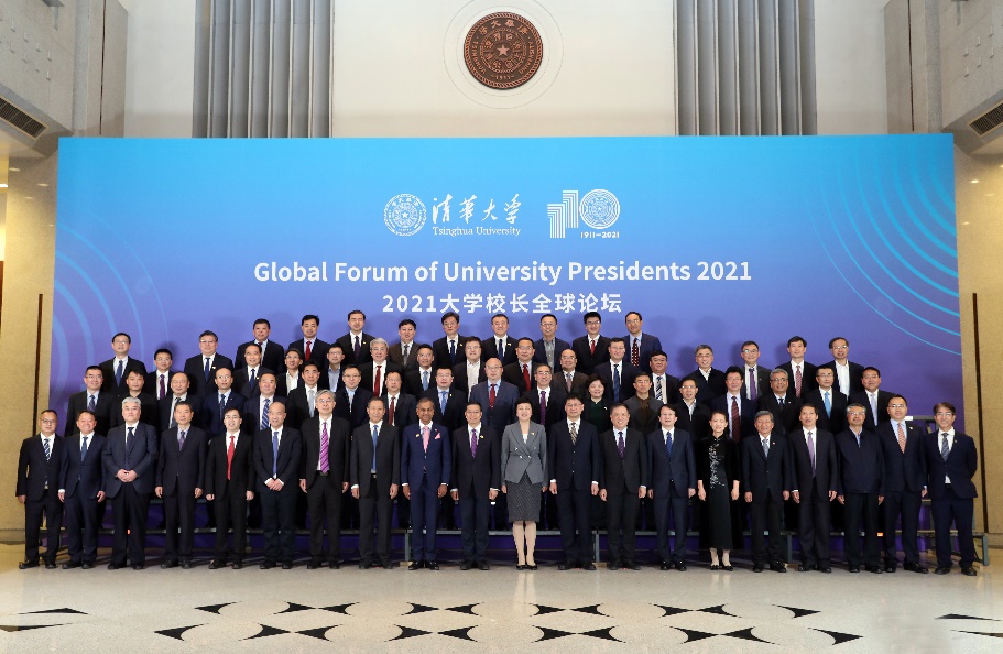 出席2021大学校长全球论坛的部分校长和嘉宾代表合影
