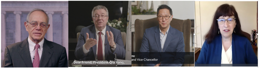 麻省理工学院、圣彼得堡彼得大帝理工大学校长、不列颠哥伦比亚大学、康奈尔大学校长(从左至右)视频致贺