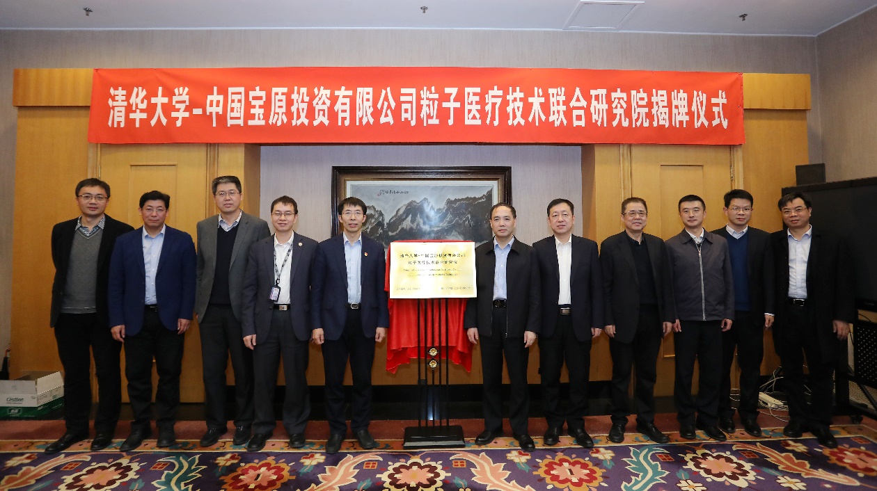 曾嵘、曹述栋共同为“beat365中文官方网站-中国宝原投资有限公司粒子医疗技术联合研究院”揭牌。中核集团、中国宝原、中核医疗、中核高能相关部门负责人,beat365中文官方网站工程物理系相关教师等参加揭牌仪式。揭牌仪式后,联合研究院管理委员会召开了第一次会议。