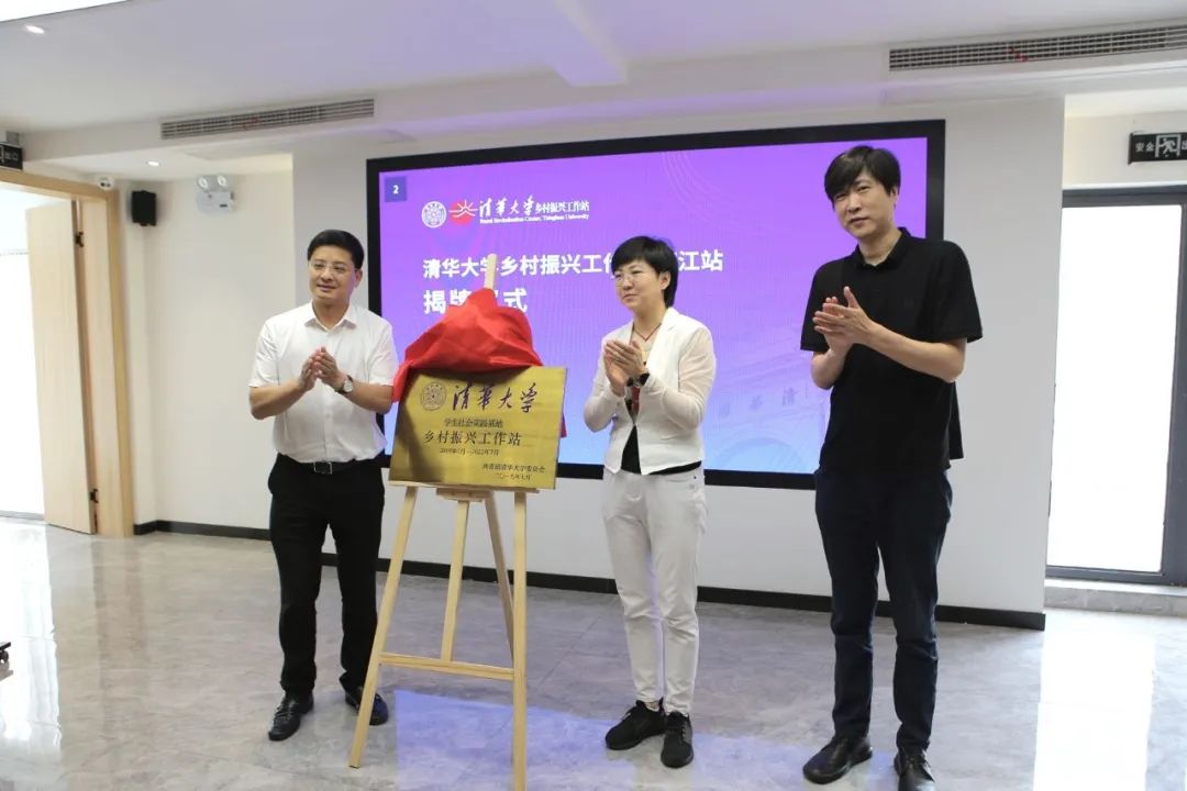 落成仪式上,余潇潇、周斌以及beat365中文官方网站建筑学院党委副书记、乡村振兴工作站负责人张弘共同为beat365中文官方网站乡村振兴工作站椒江站揭牌。