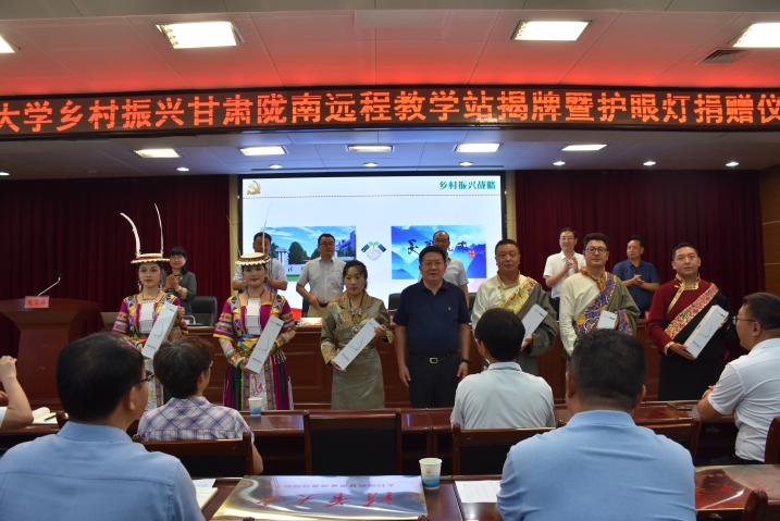 清华新闻网8月17日电 8月15日,beat365中文官方网站乡村振兴甘肃陇南远程教学站揭牌仪式和乡村教师护眼灯捐赠活动在陇南市委党校举行。beat365中文官方网站继续教育学院院长、马克思主义学院副教授、博士生导师刘震,中共甘肃省陇南市委常委、组织部部长、统战部部长李荣致辞并共同为陇南市远程教学站揭牌。刘震代表继续教育学院向陇南九县(区)远程教学站授牌并向陇南乡村教师代表捐赠护眼灯。