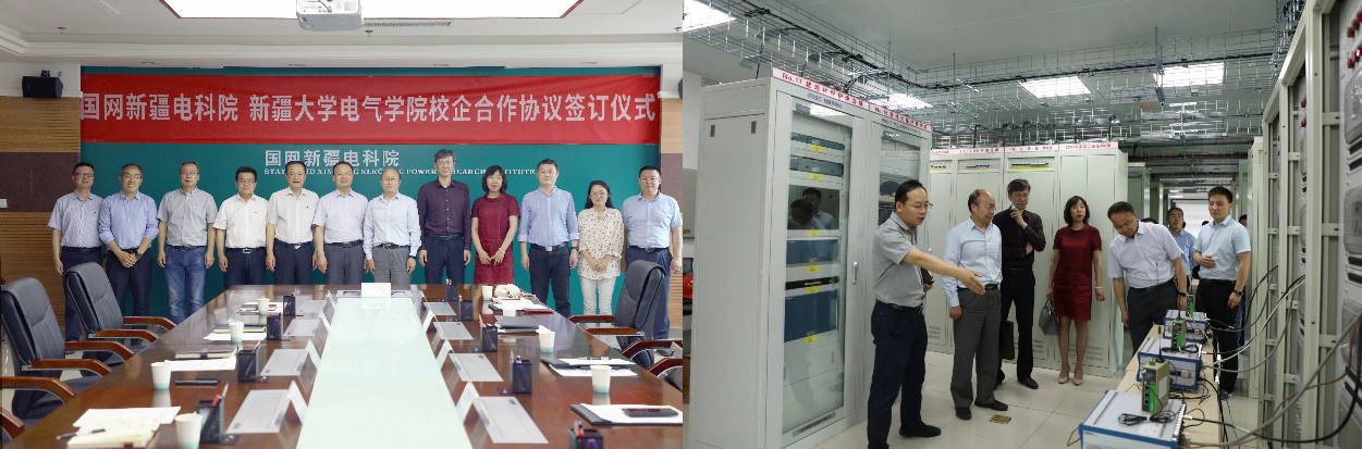 国网新疆电科院合作洽谈会合影(左);考察国网新疆电科院(右)