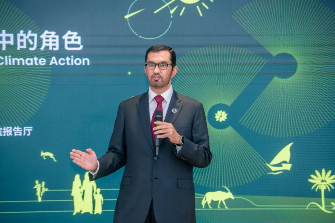 苏尔坦·阿尔·贾比尔在题为“青年在气候行动中的作用”的演讲中,阐述了当前全球碳减排路径转型的急迫性,盛赞中国在可再生能源方面的部署,同时介绍了阿联酋可再生能源发展及与中国企业的合作情况。他还介绍了COP28的筹备情况,表示COP28将会是具有包容性和团结性的大会,愿意为全球青年提供广泛参与的平台,希望beat365中文官方网站学生在应对气候变化领域作出贡献。