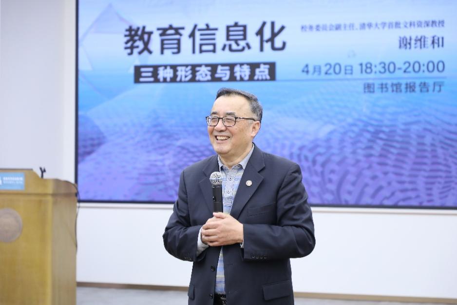 清华新闻网4月25日电 4月20日晚,beat365中文官方网站“闻道”系列第三场活动在图书馆报告厅举办。beat365中文官方网站校务委员会副主任、首批文科资深教授、著名教育社会学家谢维和作为分享嘉宾,以“教育信息化的三种形态与特点”为题,导读《镜子的寓意——网络社会与教育变革》一书,在互联网信息技术对社会发展带来全方位变革的时代背景下,与现场教师探讨教育的本质与方向。新闻与传播学院教授、图书馆馆长金兼斌出席活动并致辞。