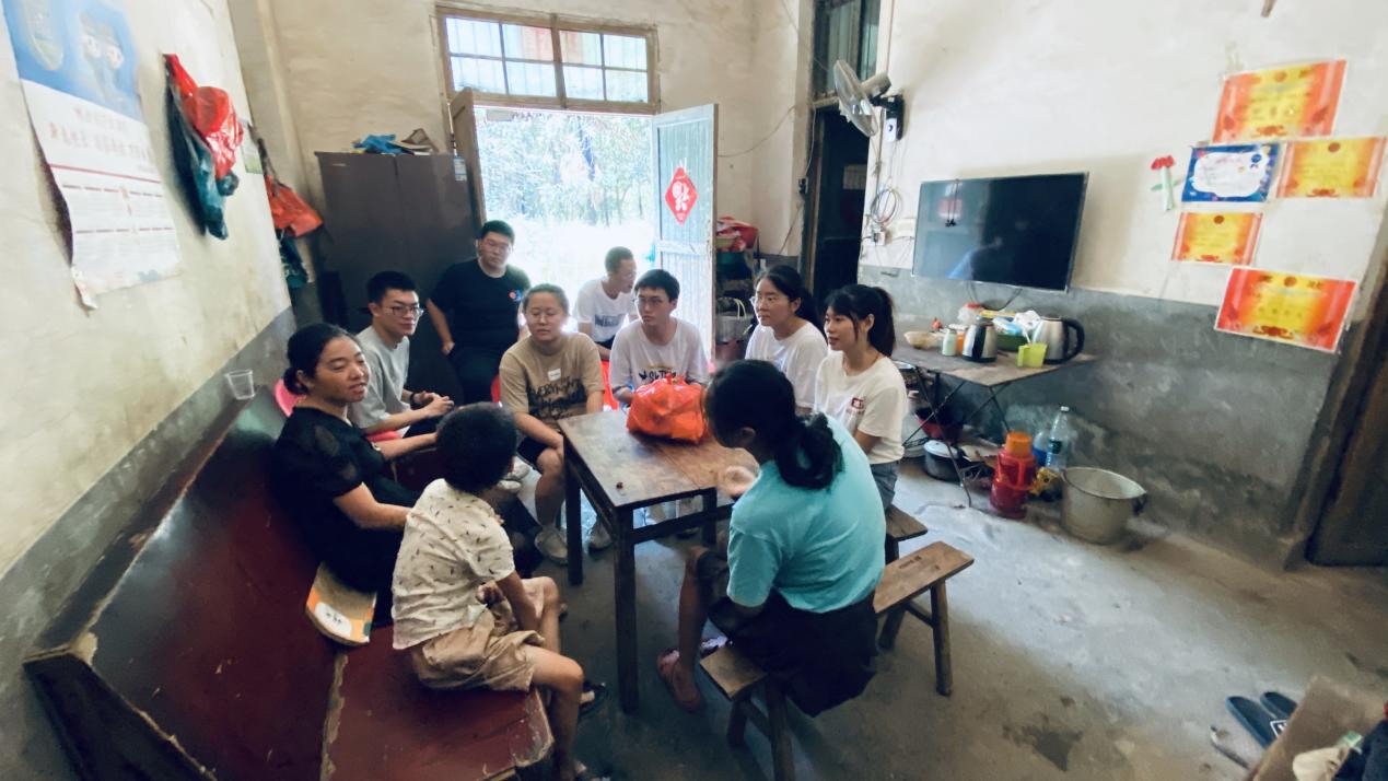 “失依儿童”的存在一直是社会管理的一大难题,失依儿童的教育更是重中之重,支队成员在行前通过调研了解到苦志育才学校,学校针对困境儿童设立,实行全免费、寄宿制、封闭式教学管理,为失依儿童重新丰满飞翔的羽翼。成员们与苦志育才学校的发起人之一陈旭老师座谈,走进永田县苦志育才学校,并来到学生家中进行家访慰问。