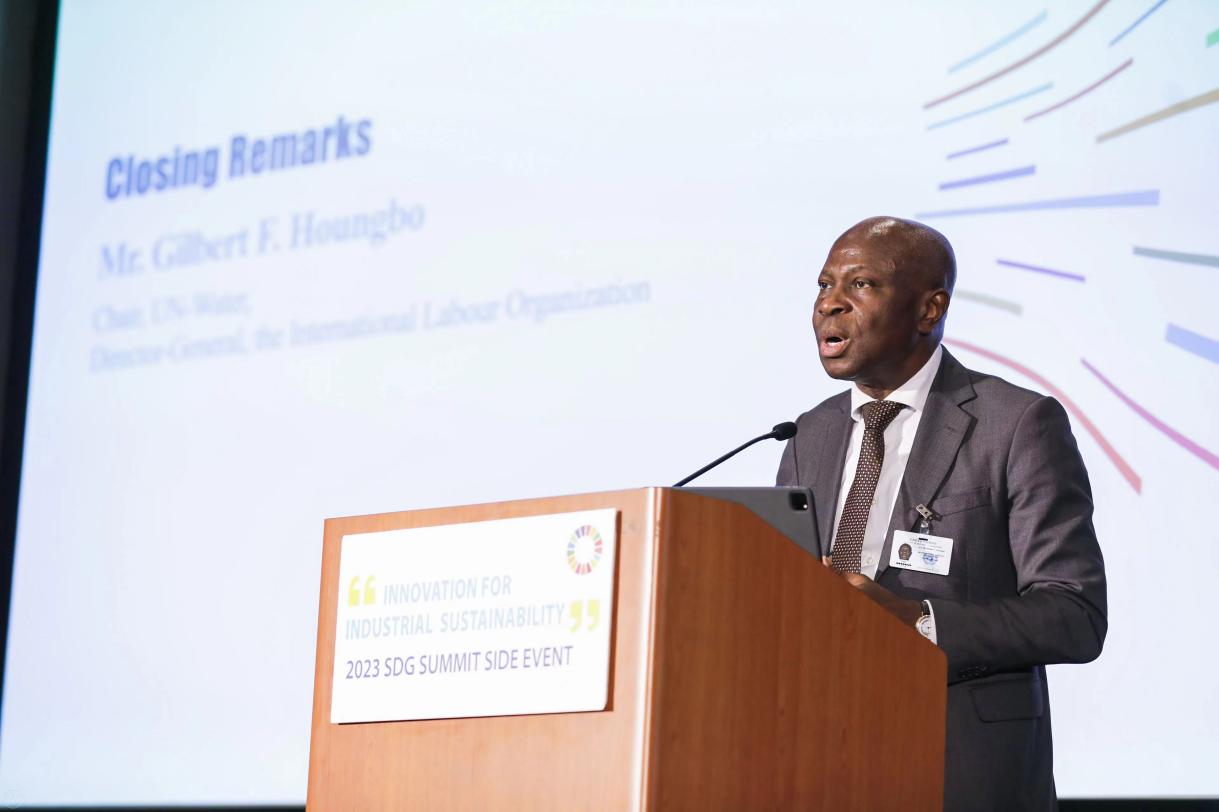 吉尔贝·福松·洪博表示,数月前,联合国在时隔近50年后首次举办了水事会议。在富有雄心的《水行动议程》中,私营部门被认为是加速行动进展的关键角色。调动企业界的负责任行为和对于水事及公共卫生方面的支持,将有力提速变革的步伐。