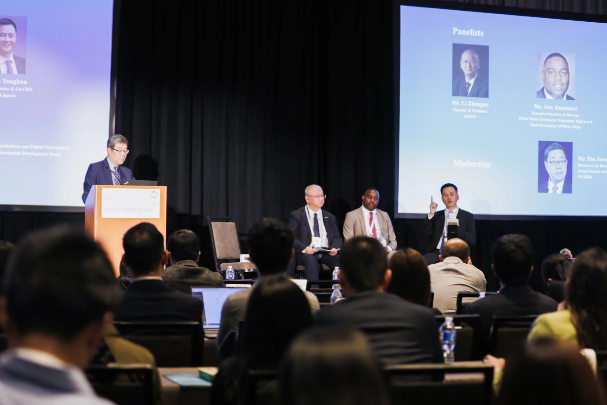 在随后的“应对三重地球危机,工商界在行动”主题论坛上,隆基绿能创始人、总裁李振国,安踏集团执行董事、联席首席执行官吴永华,全球水伙伴南部非洲委员会非洲水资源投资项目高级别工作组秘书处主任亚历克斯·西马拉比(Alex Simalabwi)参与对话。该主题论坛由联合国经济和社会事务部公共机构和数字政府司司长、联合国经济和社会事务部可持续发展目标司代理司长朱巨望主持。