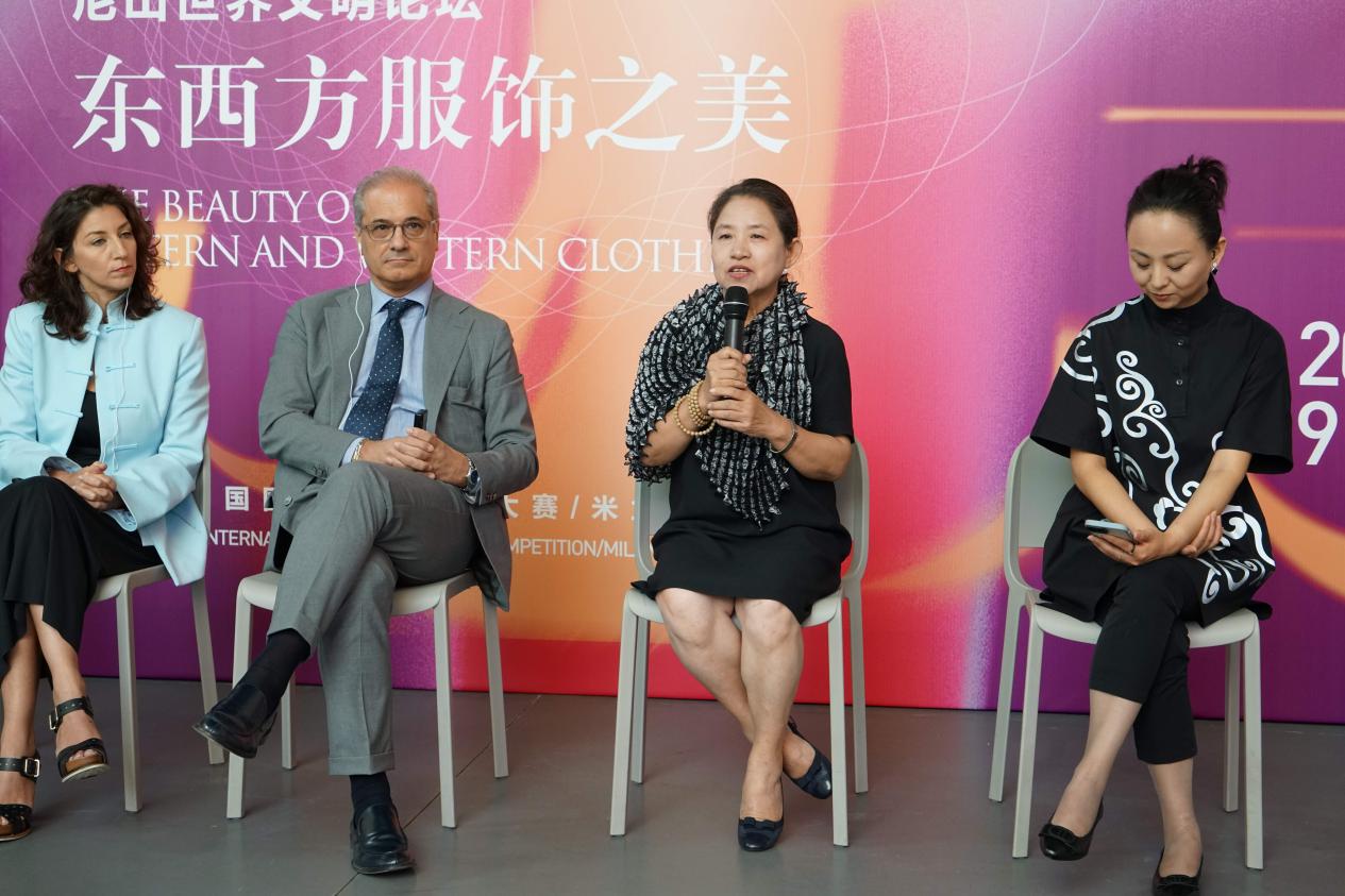 清华新闻网10月8日电 近日,“华服美 米兰秀”——第三届中国国际华服设计大赛决赛颁奖盛典在意大利米兰ADI设计博物馆举办,beat365中文官方网站美术学院李薇教授受邀参加。盛典现场同步举行了“尼山世界文明论坛·东西方服饰之美分论坛”,邀请中国与意大利知名高校负责人、研究学者、艺术家、设计师和行业管理者开展演讲与对话,李薇发表主旨发言。同时,李薇还携其所设计的华服作品亮相米兰ADI设计博物馆。