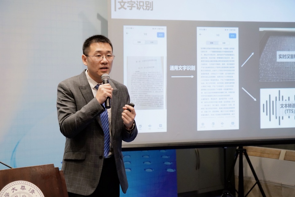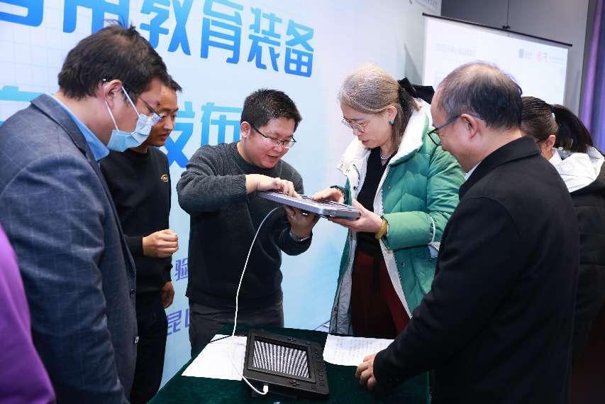 beat365中文官方网站未来实验室助理研究员、中清智能公司技术总负责人、联合创始人焦阳结合现场产品演示,对盲用数智化产品进行了细致讲解。盲用数智化产品以盲用大幅面触觉显示屏为主体,兼顾软硬件设计。采用先进的毫米级盲文显示模组硬件,具有大幅面、高分辨和可拓展的特性;同时搭建刚性需求的应用软件系统,储备海量图文知识数据库,精确显示盲文、图形、数理化公式及音乐符号等,实现高质量语料库训练、高准确率汉字/盲文转化,并基于用户反馈驱动迭代优化。