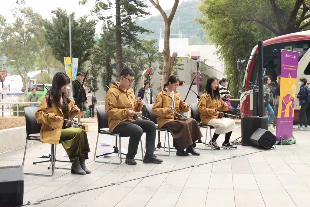 1月11日下午,学生艺术团民乐队在香港中文大学参与了“Melodies in the Air”路演活动,展示了二胡四重奏《战马奔腾》和唢呐独奏《百鸟朝凤》。路演期间,曼彻斯特大学的同学们对中国民族乐器表现出极大的兴趣,两校同学在业务方面进行了深入交流。