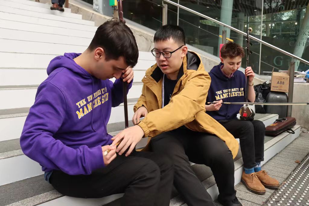 曼彻斯特大学合唱团的同学学习拉二胡