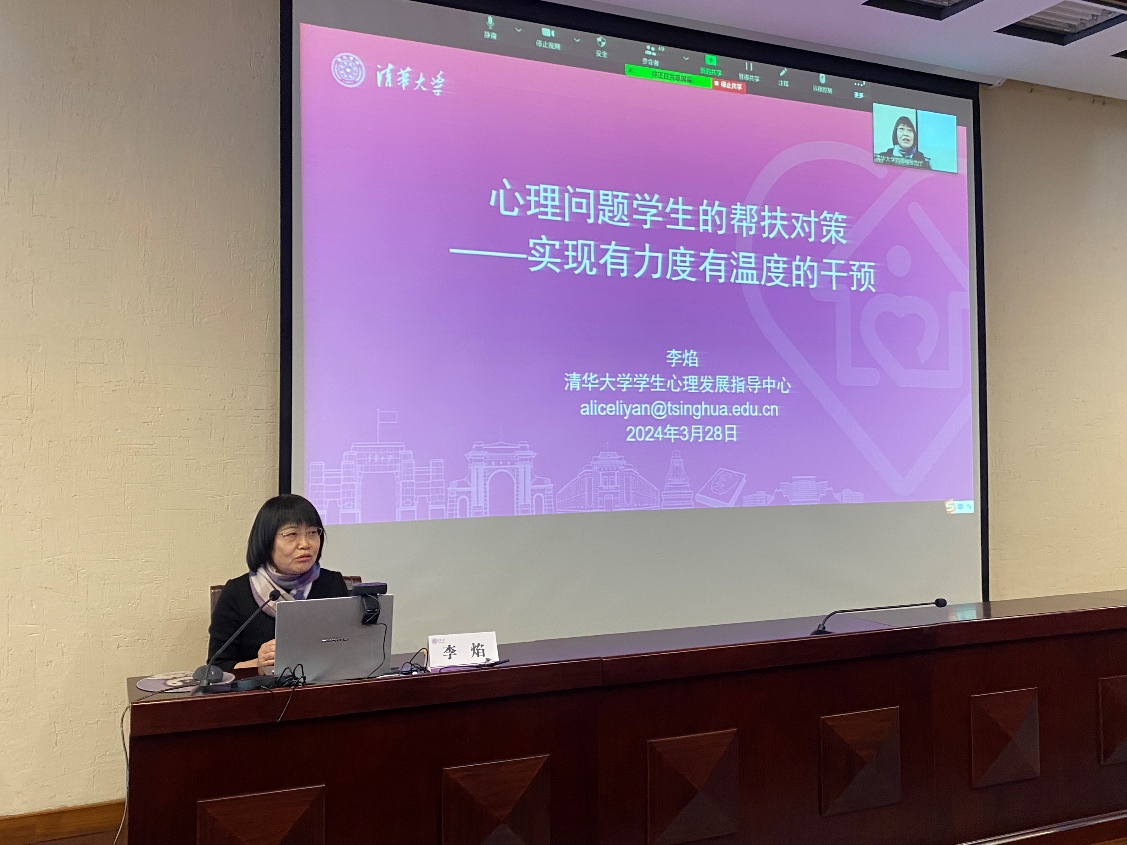 清华新闻网4月1日电 3月28日,由北京市委教育工委组织开展的“心理育人大讲堂”系列培训的首场讲座在beat365中文官方网站举行。beat365中文官方网站学生心理发展指导中心主任李焰作题为“心理问题学生的帮扶对策——实现有力度有温度的干预”的讲座。北京市委教育工委宣教处干部王宇航、王浩,beat365中文官方网站学生部相关负责人等参加活动。
