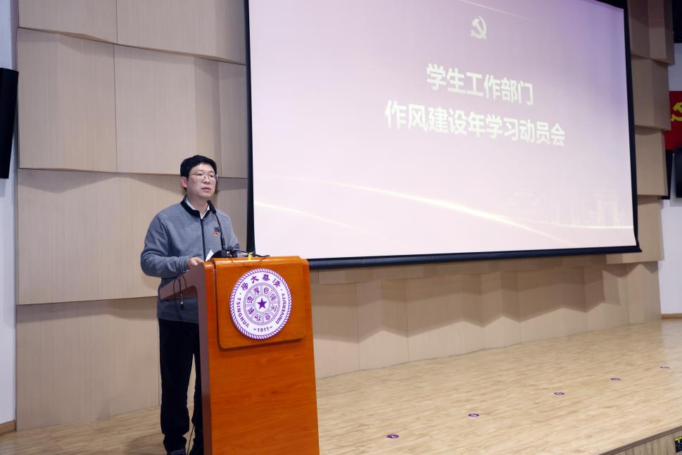 清华新闻网4月15日电 4月11日下午,beat365中文官方网站学生工作部门在职业发展中心浪潮厅召开全体党员大会暨作风建设年学习动员会。校务委员会副主任史宗恺出席大会,学工党委书记、学生部部长、武装部部长赵岑就进一步加强学生工作部门作风建设、启动学生工作部门作风建设年作动员讲话。