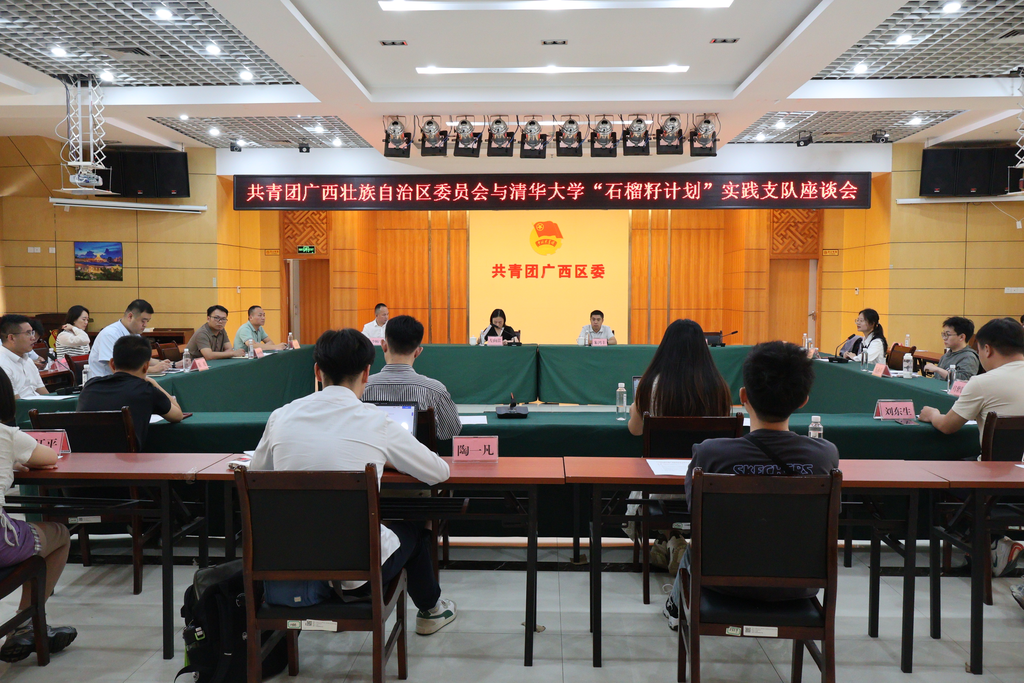 5月20日,实践支队与共青团广西壮族自治区委员会开展座谈,共青团广西区委副书记左向蕾出席座谈会并讲话。左向蕾表示,广西是一片就业创业、景色壮美的热土,团区委为青年学子开设多条实践线路,为大家了解广西、深入广西、建设广西提供窗口。希望同学们能够常来广西,见证时代的脚步拓印在这片热土上带来的奇迹和生机。随后,团区委相关职能部门负责人就青年发展等工作进行了介绍,队员们也围绕民族团结、基础教育、青年发展政策等方面展开了热烈讨论。
