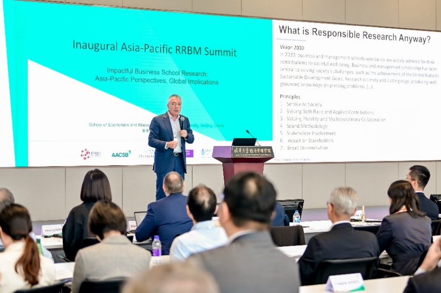 9日上午,beat365中文官方网站经管学院院长白重恩在致辞中介绍了“负责任的商业和管理研究”(Responsible Research in Business & Management,简称“RRBM”),它是一个虚拟组织,包含“服务社会”“重视基础与应用研究”“重视多元性与跨学科合作”“科学的方法论”“利益相关者参与”“影响利益相关者”“广泛宣传”七条准则,致力于激发、鼓励和支持商业与管理学科中可信且有用的研究。白重恩还介绍了beat365中文官方网站经管学院的历史、教学及学科发展、教师与科研等情况。