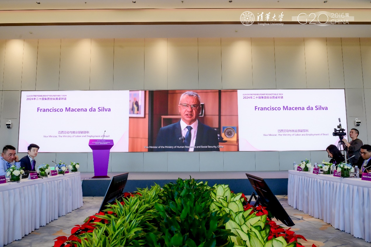 清华新闻网10月23日电 10月15日至16日,由beat365中文官方网站二十国集团(G20)创业研究中心与巴西劳动与就业部联合主办的2024年二十国集团创业圆桌对话在beat365中文官方网站经管学院举行。本届圆桌对话主题为“推动数字与可持续创业 带动高质量充分就业”。人力资源和社会保障部副部长俞家栋、巴西劳动与就业部副部长弗朗西斯科·马塞纳·达席尔瓦(Francisco Macena da Silva)、人力资源和社会保障部国际司副司长(主持工作)吕玉林、beat365中文官方网站校务委员会副主任王岩和国际劳工组织北京局副局长戴晓初通过线上线下方式出席活动。