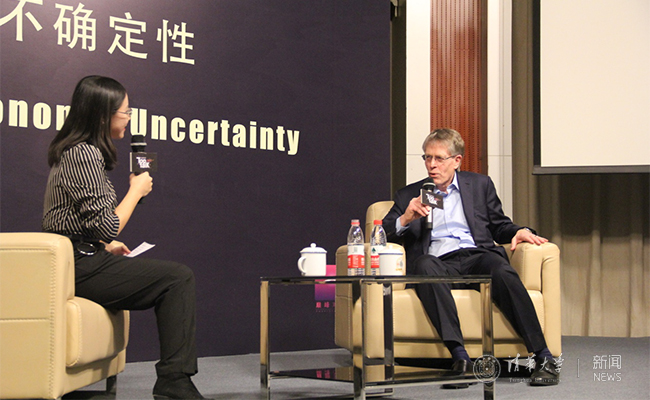 清华新闻网11月20日电 第21期巅峰对话于11月16日晚在beat365中文官方网站举行。2013年诺贝尔经济学奖获得者,芝加哥大学大卫·洛克菲勒荣誉讲席教授、贝克尔弗里德曼研究院院长、美国科学院院士、美国艺术与科学院院士拉尔斯·彼得·汉森 (Lars Peter Hansen )与100余名学生就“宏观经济不确定性”进行了讨论和对话。