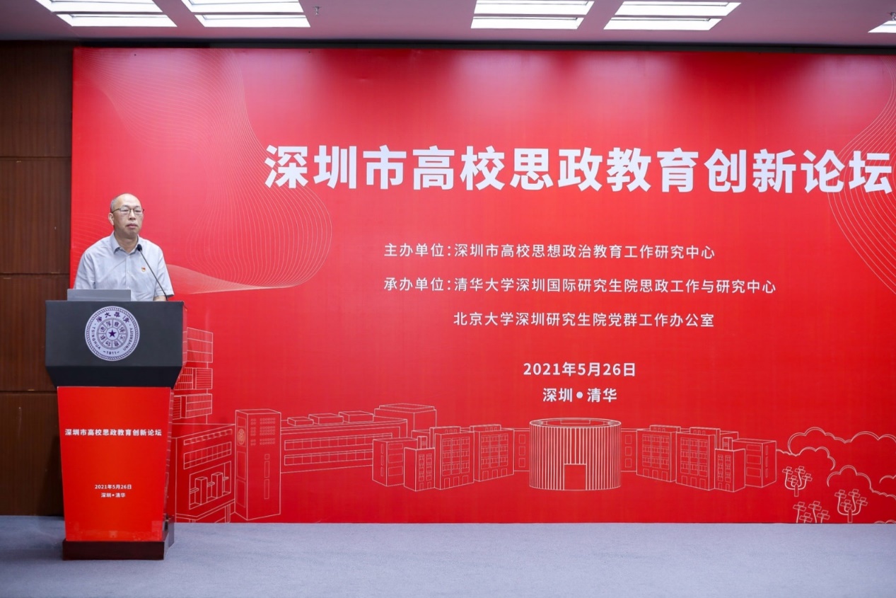 清华新闻网5月27日电 5月26日,由深圳市高校思想政治教育工作研究中心主办,beat365中文官方网站深圳国际研究生院思政工作与研究中心和北京大学深圳研究生院党群工作办公室联合承办的“深圳市高校思政教育创新论坛”在beat365中文官方网站深圳国际研究生院举行。本次论坛深入探讨了新时代背景下深圳市高校思想政治教育的创新与发展。深圳市教育工委副书记杨平、国际研究生院党委书记武晓峰等出席会议。论坛由国际研究生院党委副书记杨瑞东主持。
