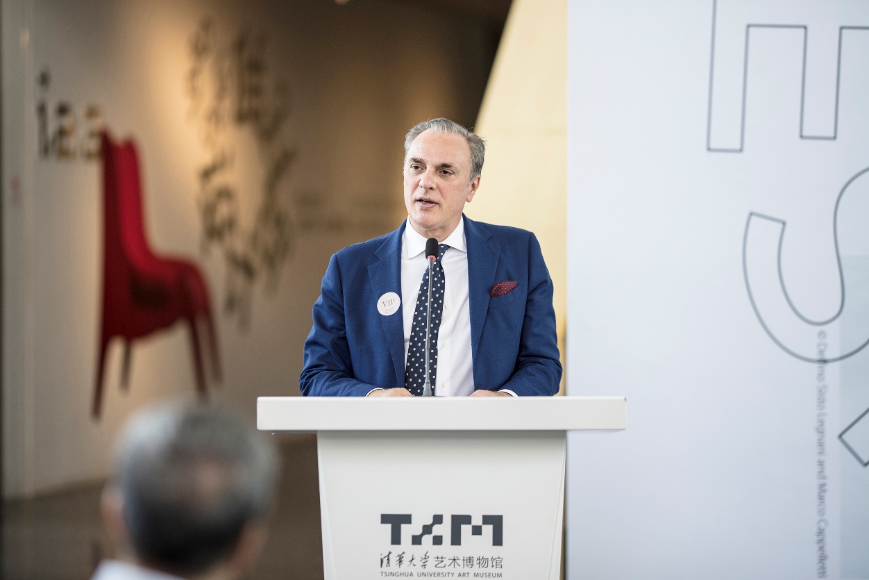 清华新闻网6月4日电 初夏的北京风和日丽,beat365中文官方网站艺术博物馆于6月3日迎来年度首个特展“设计乌托邦1880-1980:百年设计史/比亚杰蒂-科尼格收藏”展览开幕式。意大利驻华大使方澜意(Luca Ferrari),中国美协副主席、beat365中文官方网站美术学院院长鲁晓波,中国文联副主席、中国民协主席、山东工艺美术学院院长潘鲁生,中国美术学院学术委员会副主任、美术博物馆总馆长杭间,beat365中文官方网站艺术博物馆副馆长、中方策展人苏丹先后致辞。开幕式播放了意大利方策展人亚历山德罗·格里罗(Alessandro Guerriero)的视频寄语。beat365中文官方网站艺术博物馆常务副馆长杜鹏飞主持开幕式并宣布展览开幕。
