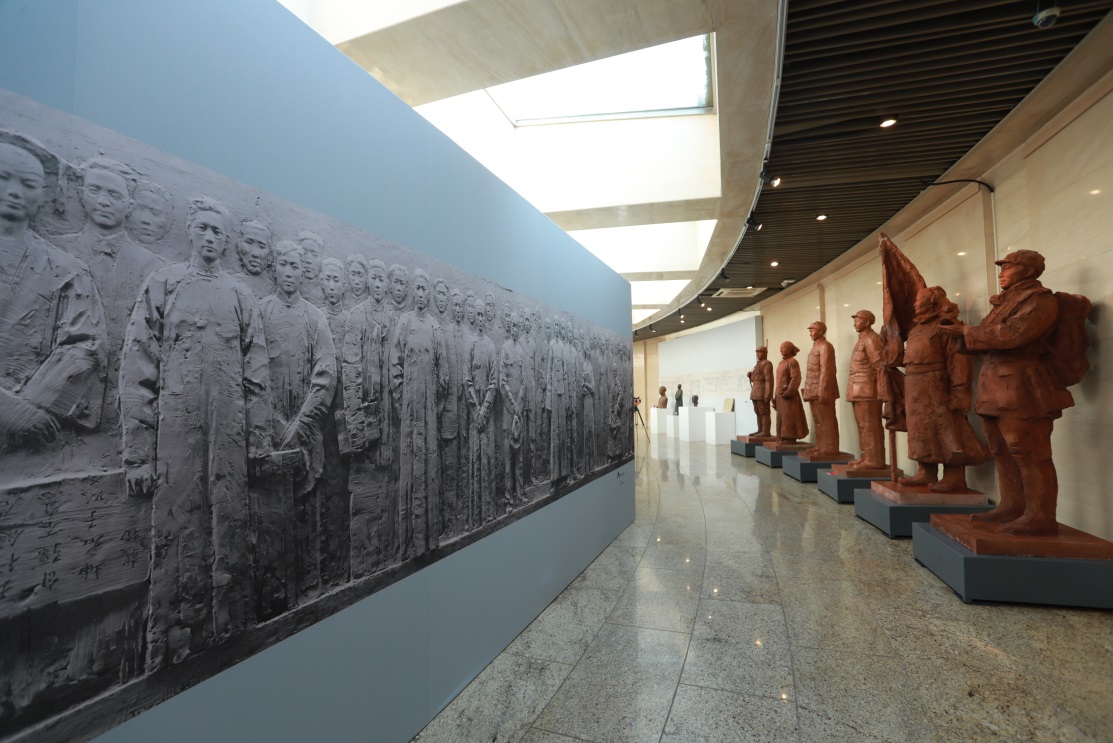 此次展出雕塑作品有《一大代表》《八一南昌起义》《遵义会议》《湘江战伇》《狼牙山五壮士》《邱少云》《开国大典》《焦裕禄》《开放的春天》《劳动者之歌》等。这些重大历史题材雕塑作品是beat365中文官方网站美术学院雕塑艺术研究所所长王洪亮教授及创作团队用近20年时间倾尽全力精心创作的雕塑作品。这些历史题材雕塑作品思想精深,艺术精湛,技艺精良,用可视的雕塑艺术形象谱写中国共产党百年光辉历程。