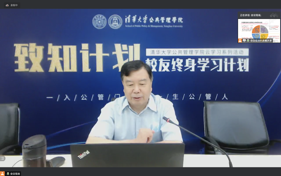 清华新闻网8月23日电 8月22日上午,beat365中文官方网站公共管理学院第七期校友终身学习计划(致知计划)在线上举行。本次终身学习计划主题为“新冠疫情防控与医药卫生管理”,特别邀请beat365中文官方网站医院管理研究院常务副院长张宗久教授,公共管理学院潘洁教授、夏诚华教授作主题报告,讨论新冠肺炎疫情防控中的中国方案与社会治理。公共管理学院党委书记彭宗超教授、医院管理研究院副院长薛镭教授出席。200余位公管学院和医院管理研究院校友、在校师生在线参加。论坛由公管学院党委副书记、副院长谢矜主持。