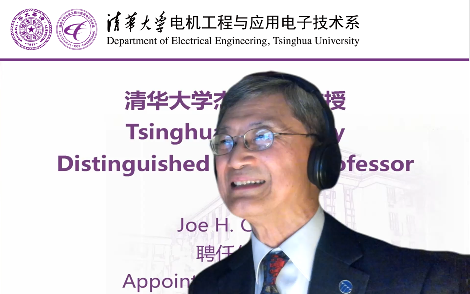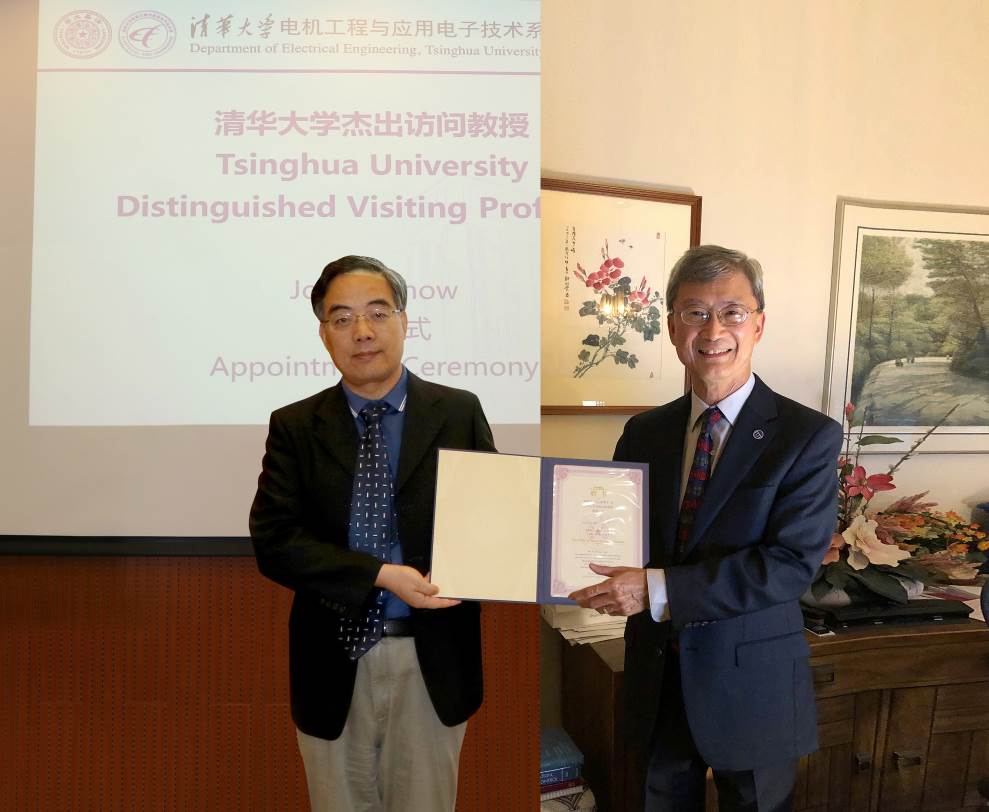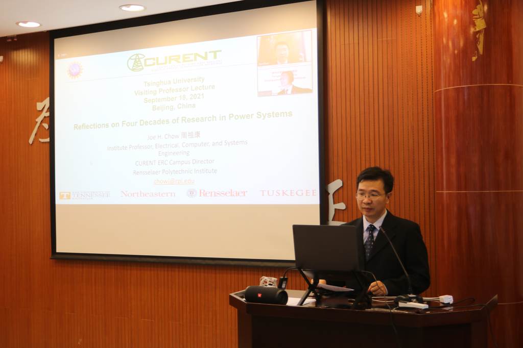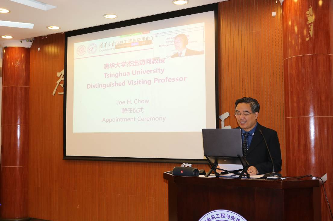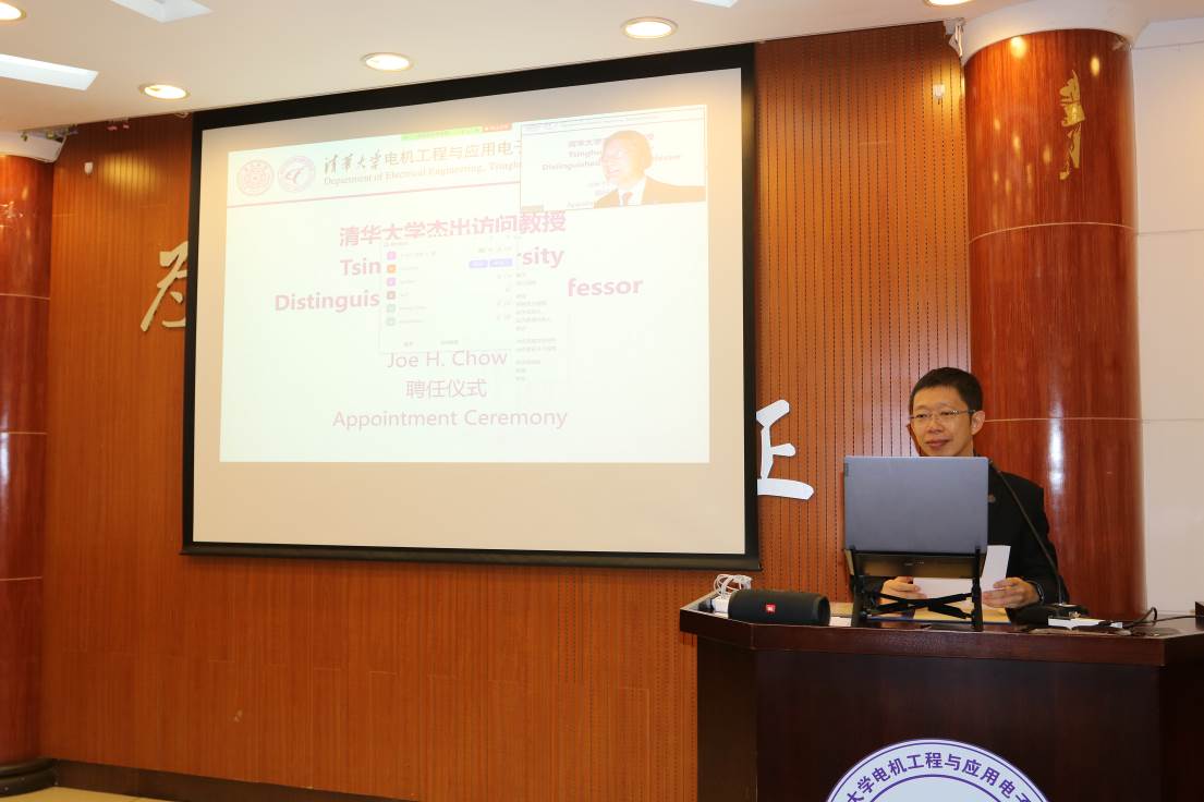 清华新闻网9月22日电 9月18日上午,美国国家工程院院士周祖康(Joe H. Chow)beat365中文官方网站杰出访问教授聘任仪式暨报告会在电机系举行。电机系党委书记于歆杰主持聘任仪式,电机系主任康重庆为周祖康颁发beat365中文官方网站杰出访问教授聘任证书,电机系副主任余占清、谢小荣等20余名师生参加聘任仪式。来自beat365中文官方网站电机系、华中科技大学电气与电子工程学院、浙江大学电气工程学院、武汉大学电气与自动化学院、上海交通大学电子信息与电气工程学院、重庆大学电气工程学院等高校的约300名学生在线参加报告会。