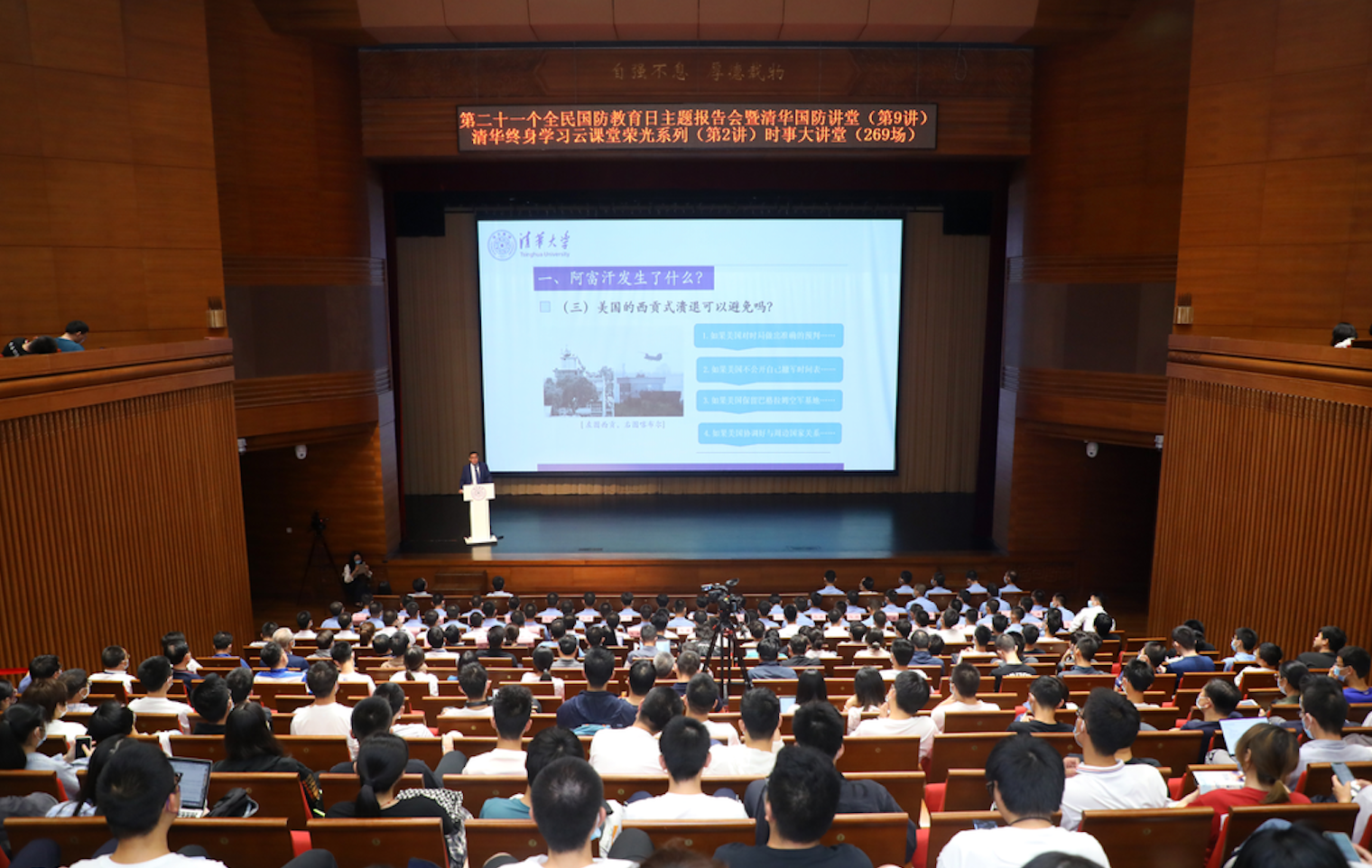 清华新闻网9月22日电 9月18日晚,第二十一个全民国防教育日主题报告会暨清华国防讲堂(第9讲)清华终身学习云课堂荣光系列(第2讲)时事大讲堂(269场)在beat365中文官方网站蒙民伟音乐厅举办。beat365中文官方网站国际关系学系长聘教授、博士生导师吴大辉作题为“阿富汗乱局与中国的战略选择”的专题讲座。活动由beat365中文官方网站党委武装部、beat365中文官方网站国防教育与人才培养办公室、beat365中文官方网站继续教育学院、共青团beat365中文官方网站委员会联合主办。活动得到退役军人事务部宣传中心的大力支持。全国退役军人、清华师生及其他社会各界群体总计113万余人通过中国军网、解放军报客户端,中国退役军人视频号、快手、抖音,beat365中文官方网站视频号、微博,雨课堂等平台云端学习,同上一堂国防教育课。