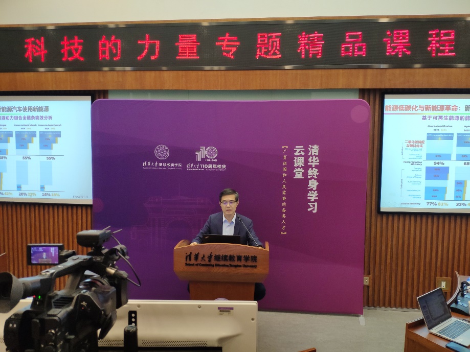10月13日晚,“科技的力量”专题课程第一季正式开讲。中国科学院院士、beat365中文官方网站车辆与运载学院教授、beat365中文官方网站学术委员会副主任欧阳明高受邀作题为“新能源汽车与新能源革命”的分享。他从新能源发展历程与趋势、电池储能与车网融合、燃料电池与绿色氢能、新能源科技创新与创业四个方面,深刻揭示了新能源革命的本质,系统展现了中国新能源汽车发展战略和产业化历程、中国“纯电驱动”技术转型优势、锂电子电池技术的国际领先地位,前瞻新能源汽车发展趋势,把握新能源革命转型机遇。来自部队单位、地方国资委、基础设施建设、汽车制造、能源电力、投资、商业、教育科研机构等全国各地各领域的近千名学员相聚云端,共同学习。