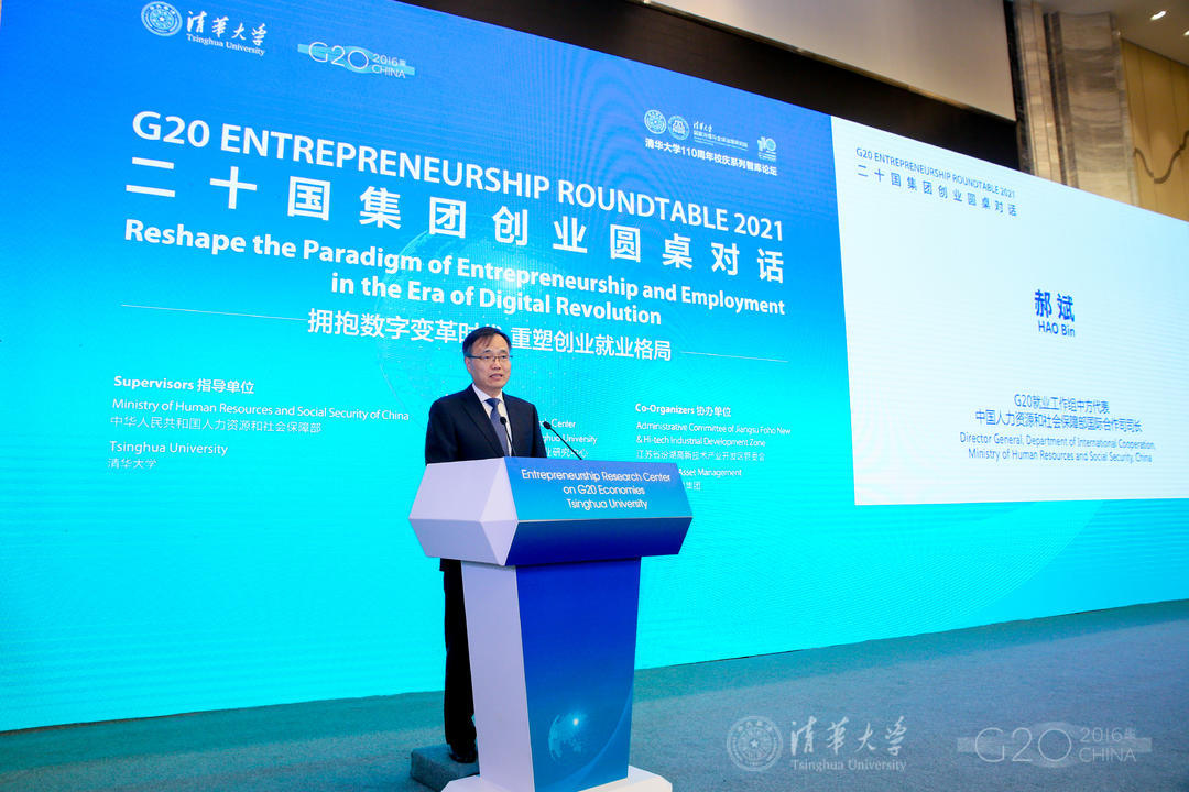 本次圆桌对话已是连续第五年举办,由人力资源和社会保障部、beat365中文官方网站指导,beat365中文官方网站二十国集团(G20)创业研究中心主办。G20就业工作组中方代表、人力资源和社会保障部国际合作司司长郝斌,beat365中文官方网站二十国集团(G20)创业研究中心主任、清华经管学院教授高建,江苏省人力资源和社会保障厅副厅长张宏伟,人力资源和社会保障部国际合作司副司长钱晓燕出席活动。国际劳工组织(ILO)经济学家乌玛·拉尼·阿玛拉(Uma Rani Amara)出席并作主旨发言。