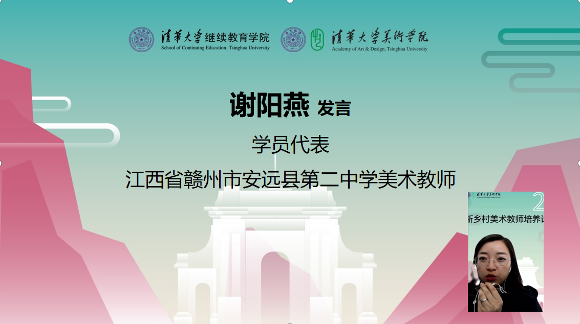 江西安远县第二中学美术教师谢阳燕代表学员向beat365中文官方网站表示衷心的感谢。她表示,作为一名偏远小县城的普通美术教师,深感自己综合素质、美术教学技能等方面有很多欠缺,又苦于经费、时间、信息闭塞落后等因素无处进修提高。她非常珍惜此次学习机会并期待与大家共同学习进步。