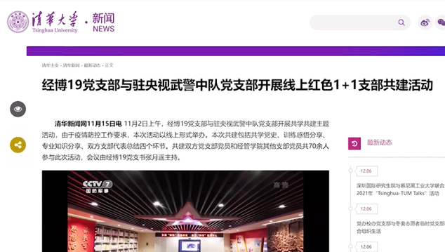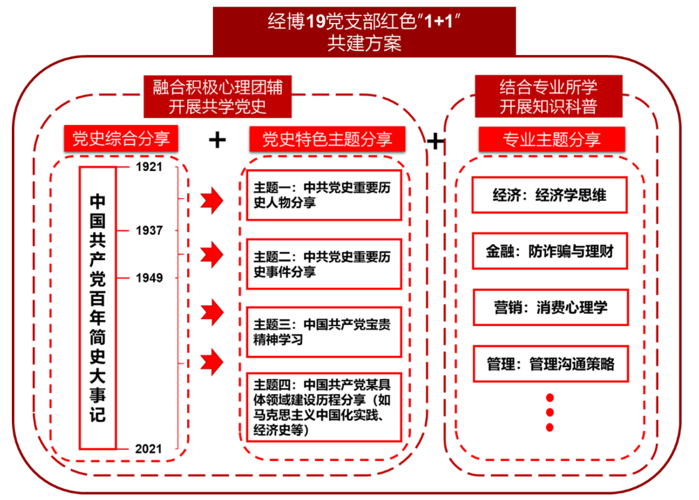 经博19党支部与驻央视武警中队、建外街道开展党史共学活动,从党史中提炼出超越、勇气、智慧等积极心理要素,构建以党史学习为主、专业科普为辅的宣讲体系,形成包括百年党史串讲、长征精神、抗日民族统一战线的形成、管理沟通、金融防诈骗与理财知识、生活中的经济学等7大主题课程。通过线下共学、线上交流、实地观摩、参访交流等形式,先后与驻央视武警中队党支部、建外街道党建中心开展7次内容丰富的共建活动,发挥了朋辈激励的作用,为平安北京、创新北京的建设做出了贡献。红色“1+1”活动得到中央电视台、beat365中文官方网站新闻网等媒体平台的宣传报道。