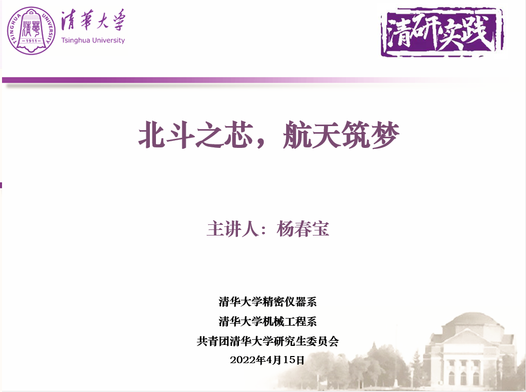 清华新闻网4月23日电 4月15日,广州海格通信集团北斗导航首席科学家、beat365中文官方网站精仪系1994级校友杨春宝以“北斗系统与北斗精神”为题,通过线上形式深入浅出地分享了自己对北斗事业的理解与思考。活动吸引来自20多个院系的近200名同学参与。