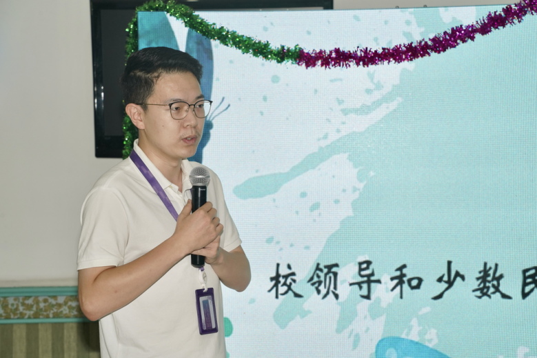 校党委统战部副部长刘鹏致开场辞,他对到场的少数民族师生表示了诚挚的问候,对新生表示热烈的欢迎。他表示,国家和学校高度重视对少数民族学生的工作,校内多个部门密切配合共同支持少数民族同学的发展,开展了形式多样、内容丰富的活动,为少数民族同学提供了多样的平台和机会。他希望同学们像石榴籽那样紧紧抱在一起,勤奋学习、拼搏进取,脚踏实地地练就真本领,不负国家和学校的信任和培养,以优异的成绩喜迎党的二十大胜利召开,为国家和民族的发展贡献自己的力量。