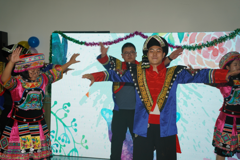 航院教授刘彬作为少数民族教师代表发言,观畴园经理张奇代表清真餐厅致辞。校党委学生部副部长魏晶与学生游戏互动;土木工程系副教授呙润华组织学生演出了土家族“摆手舞”,展示了非物质文化遗产的魅力。随后,同学们进行了歌唱、舞蹈、魔术等多个节目表演,线上线下相结合的方式举行了党史校史知识竞赛,现场精彩纷呈,得到了现场老师同学的一致赞誉。晚会场面热烈,氛围温馨。
