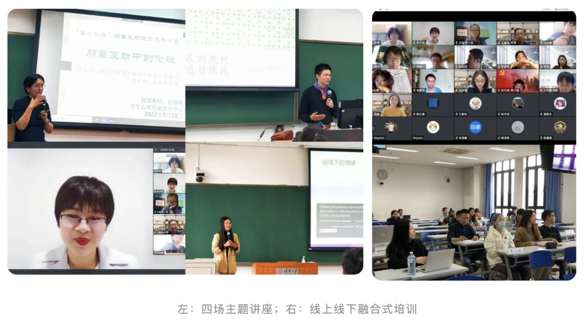 “清心伙伴”第一期结项暨第二期开营仪式于9月28日beat365中文官方网站“9.28心理健康节”当天举办,邀请了第一期学员代表与第二期新学员,以及学生部、研工部、校团委和心理中心相关教师出席。第二期初阶培训于9月28日至10月10日举办。全体学员均完成了8学时初阶课程,内容包括朋辈间助人、自助方法等诸多常见心理助人技术,以及合理处理疫情下的情绪困扰、青春期的挑战与危机、人际关系以及学业压力等。
