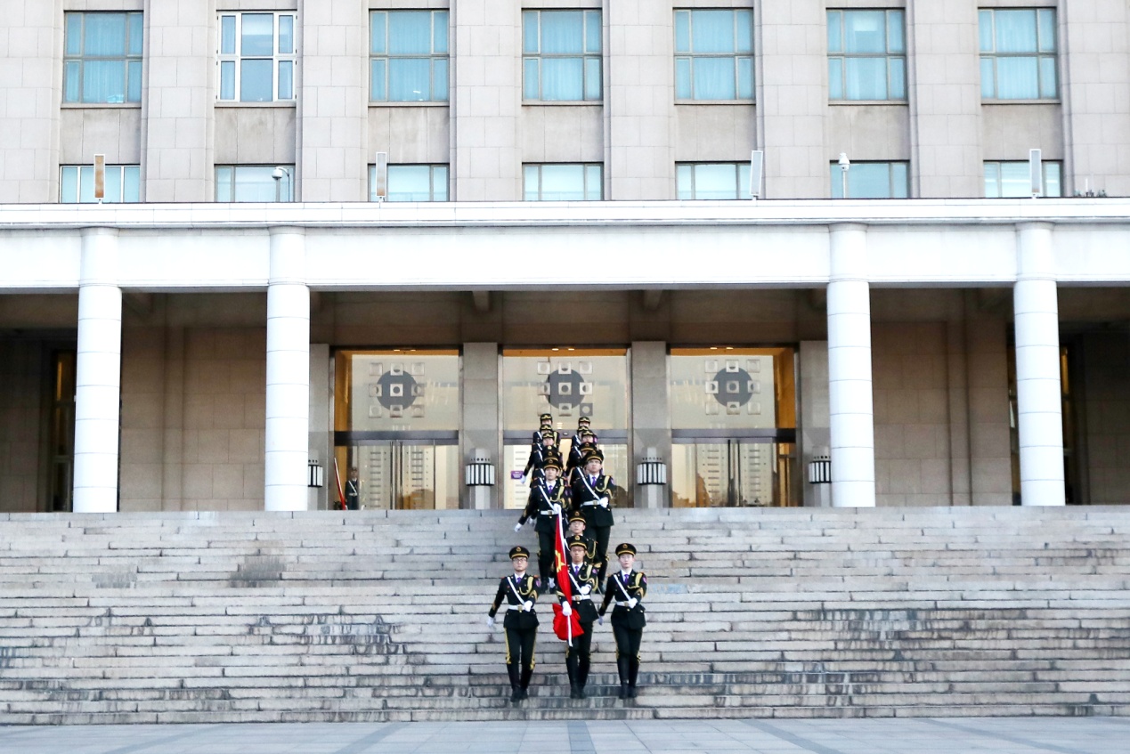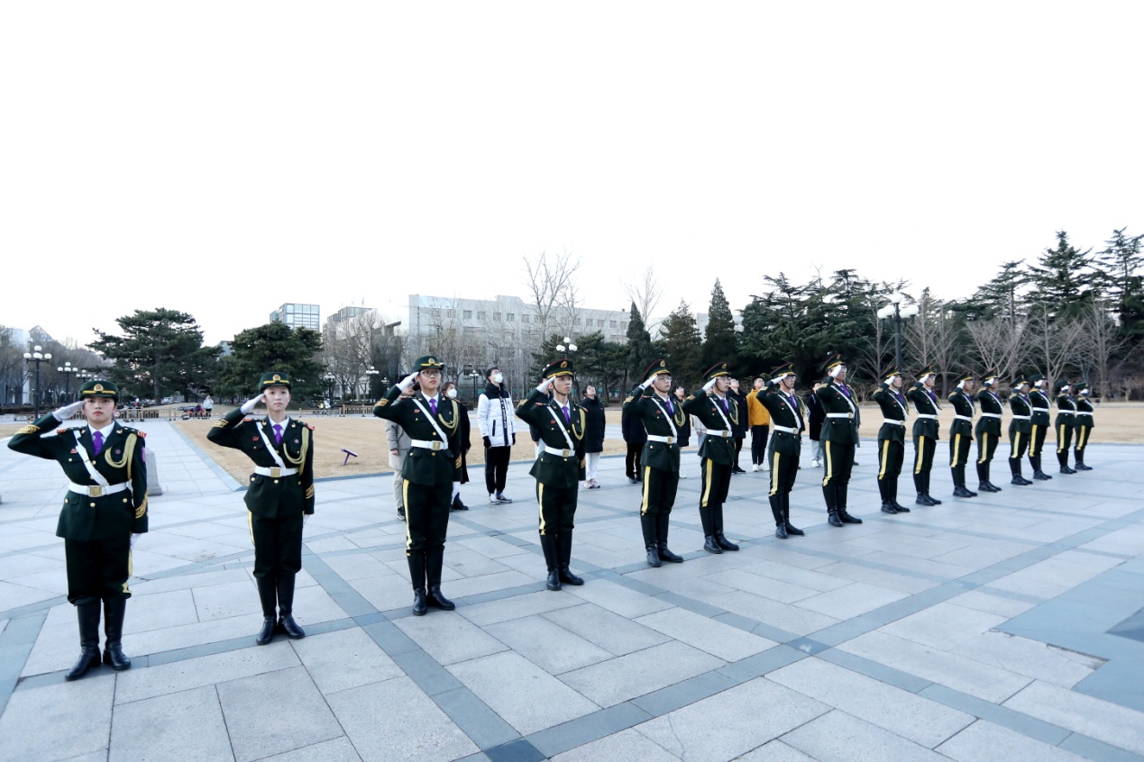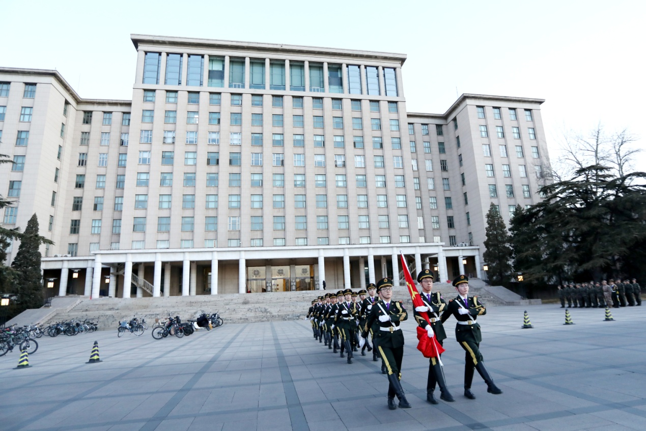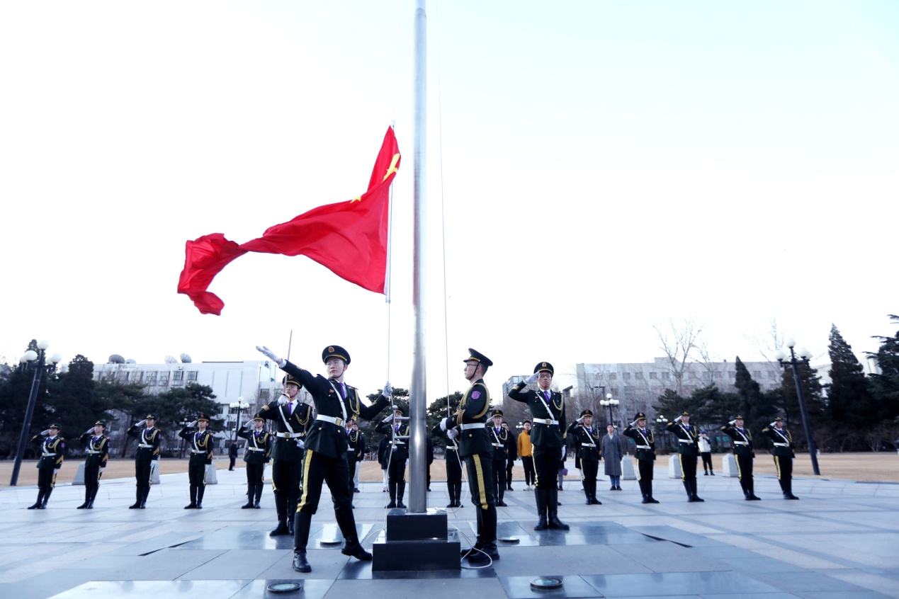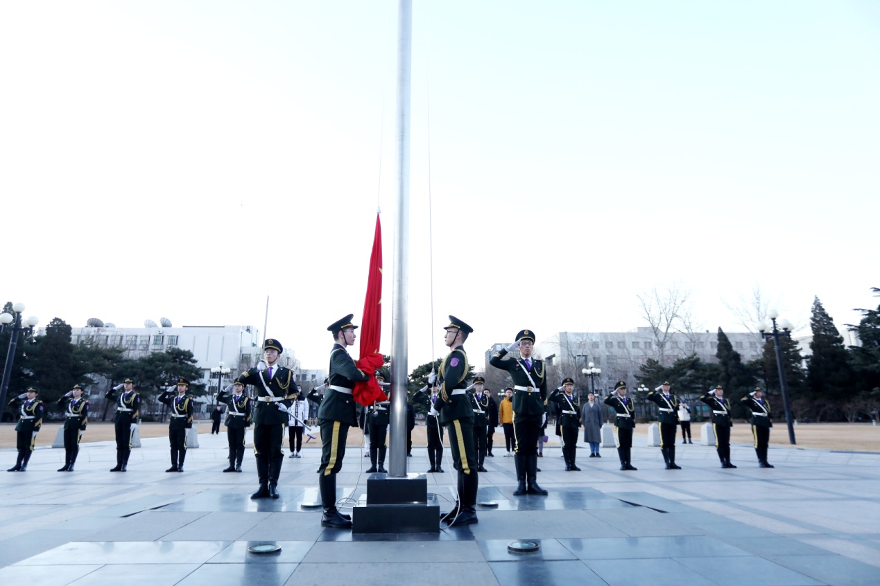 2023年2月20日早七点,beat365中文官方网站主楼前广场正步踏响,国旗飘扬,伴着松绿与鲜红,迎接新学期第一天的晨光!