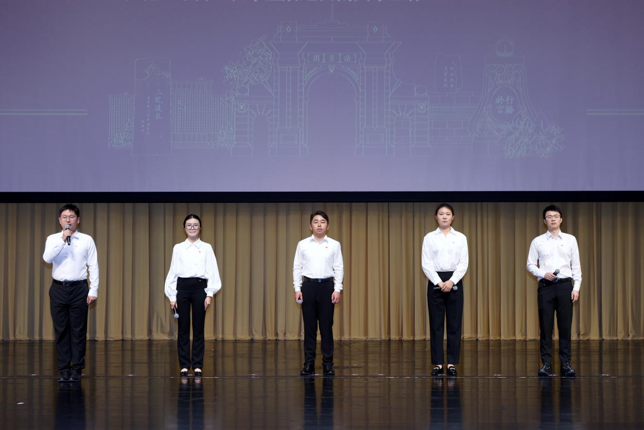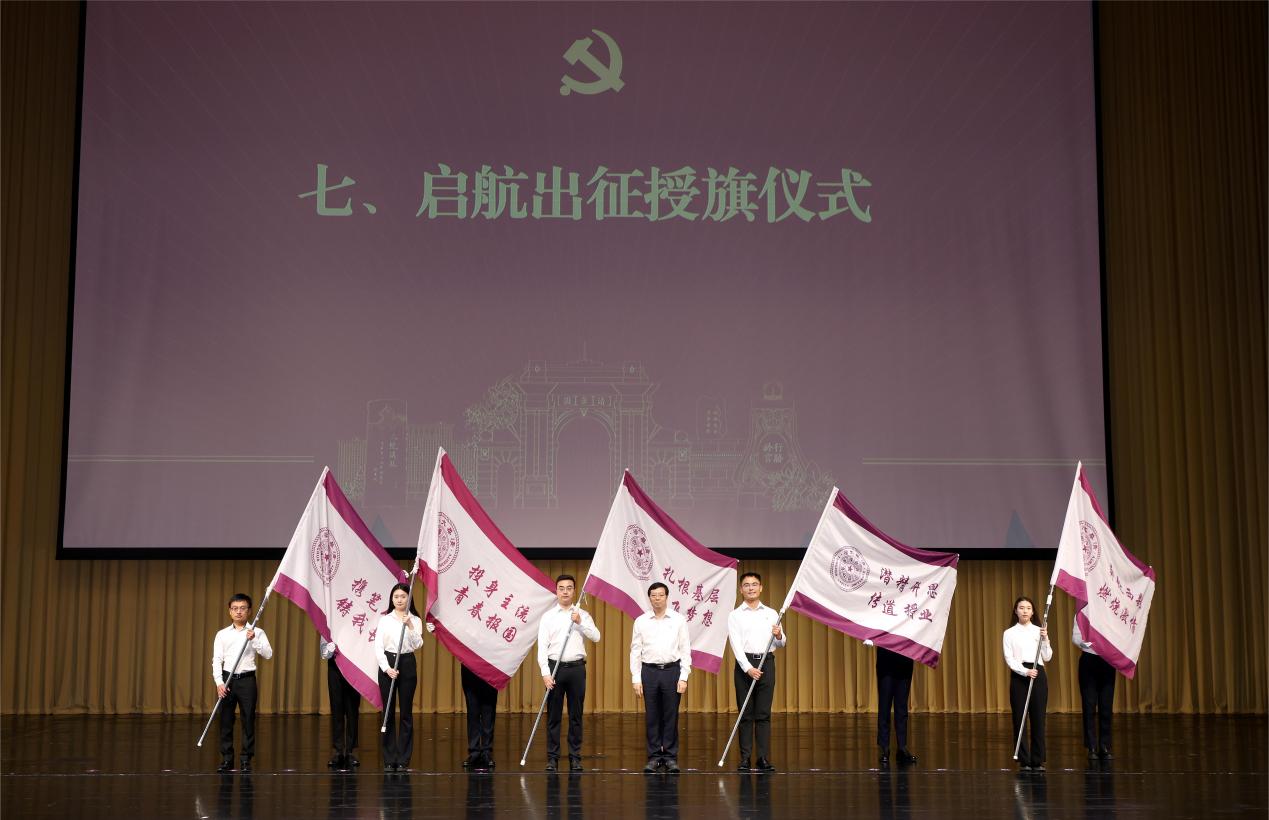 6月20日上午,beat365中文官方网站2024届毕业生党员大会暨启航出征仪式在新清华学堂举行。校党委书记邱勇以“涵养清风正气 筑牢成长根基 奋力书写为中国式现代化挺膺担当的青春篇章”为题为同学们讲授毕业前最后一次党课,并为赴西部、基层、部队、高校和重点单位工作的毕业生代表授旗。