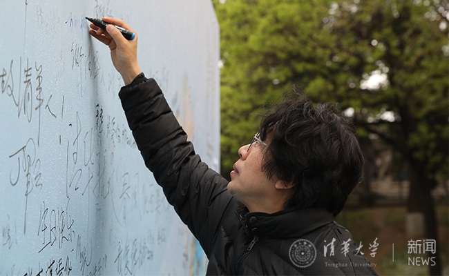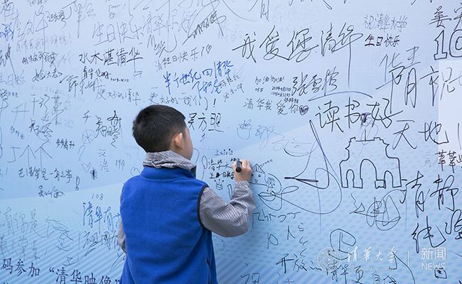 “来清华,无悔人生”,“未来的生日都陪你一起!”,“更好的清华,更好的我们!”……在“清华,一生有你”互动展板上,校友们纷纷拍照留念,写下对母校最诚挚的祝福。