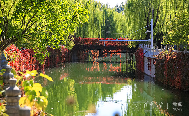 清华新闻网10月18日电(摄影 苑洁 靳翔宇 何康)忽如一夜秋风来,园子里的银杏叶黄了,金灿灿的。还有一些树叶则像染了红色颜料一般饱满地红了起来,有道是“霜叶红于二月花”。青黄交错的银杏、河水中犹如油画一般的树叶倒影、多彩的叶子掩映下的图书馆……清华园的秋,真是一个绚烂多彩的小画家。