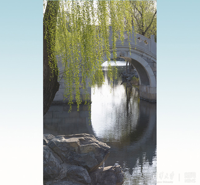 清华新闻网4月10日电(记者 苑洁 学生记者 王鹤霖 摄)四时变幻的林山,环珑着一泓秀水,山林之间掩映着古园春色。不知何时,这春色已经来到了身边,在前不久的春雪的洗礼下,更增添了一重诗情画意。