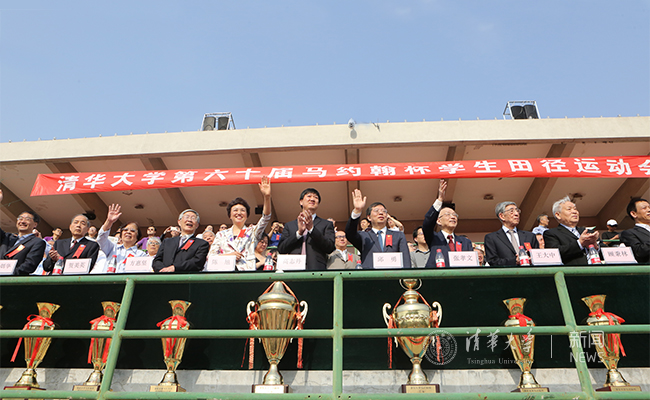 清华新闻网4月30日电(记者 程 曦 学生记者 郭雪岩 田姬熔 摄影记者 苑洁 贺施政)4月30日上午,明媚春光映衬着校庆日里一张张灿烂的笑脸,第60届“马约翰杯”学生田径运动会开幕式在东大操场隆重举行。适逢“为祖国健康工作50年”口号提出60周年,为这届“马约翰杯”增添了“双60”的美好寓意和喜庆色彩。