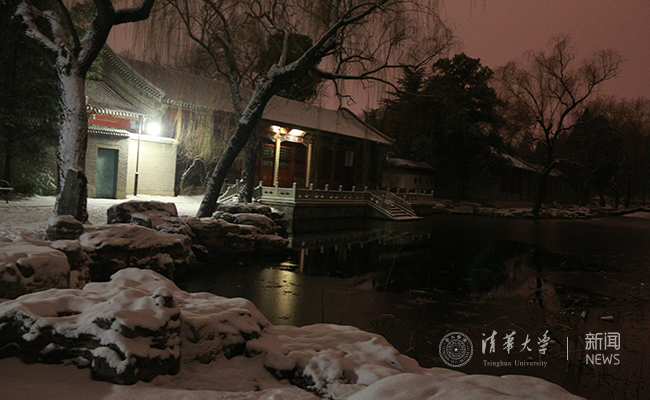 清华新闻网2月23日电 “白雪却嫌春色晚,故穿庭树作飞花”。赶在冬日的尾巴,抢在新学期的伊始,一小会儿午睡的功夫,再拉开窗帘,春雪已悄然而至,给静谧的午后增添了一丝洁白,好一个银装素裹的清华园!