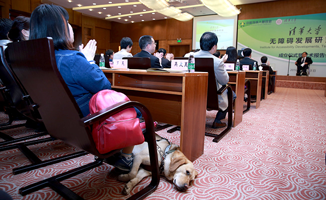 无障碍发展研究院成立仪式上的导盲犬。