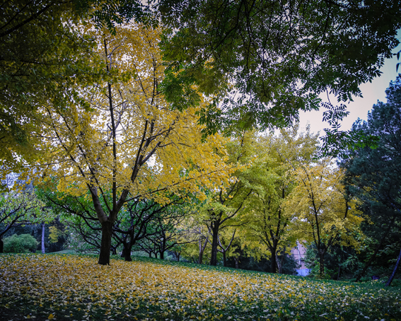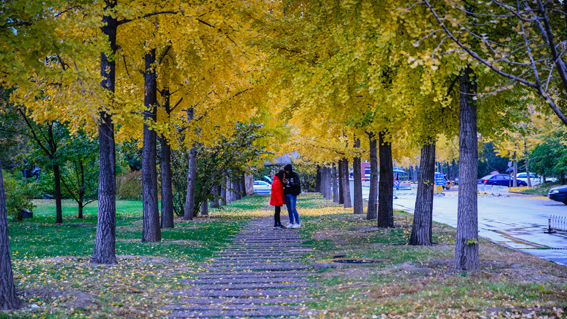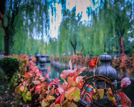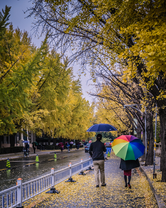 清华新闻网11月10日电(记者 张 宇 摄 骆文杰 文)曾长期在清华生活的闻一多先生在《清华园秋日》一诗中用“清华古园溪山好,白波青嶂非人间,十步一桥五步蹬,九月霜高花满山……”这样的词句来赞誉清华之秋,霜落人间,银杏铺地,秋的意味溶漾在爽朗的云天里,带给人辽远空廓的想象与回忆。