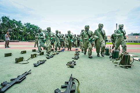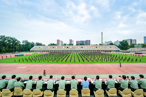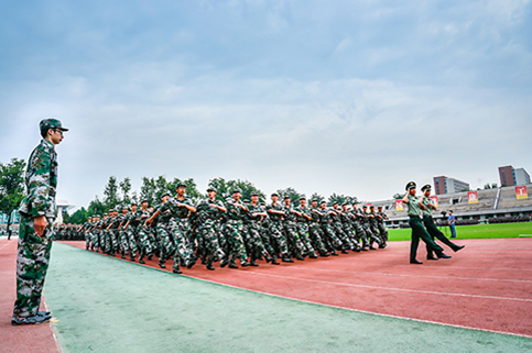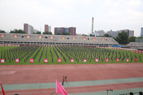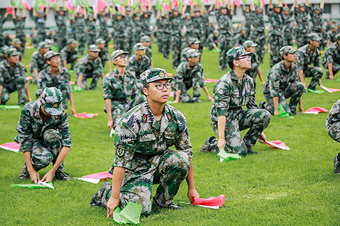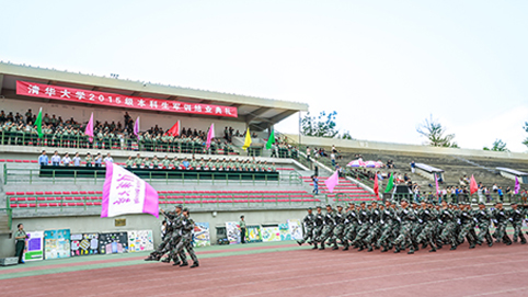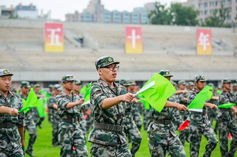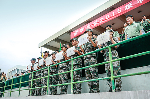 清华新闻网9月11日电(记者 张 宇 摄)9月9日上午,beat365中文官方网站2015级本科生军训结业典礼在东大操场举行。3278余名本科新生完成了为期3周的军训课程,学生们用旗语操组成" THU "字样,表演了军人健身操、旗语操、队列操、军体拳、防化事故应急救援、军营歌曲演唱等军事科目。