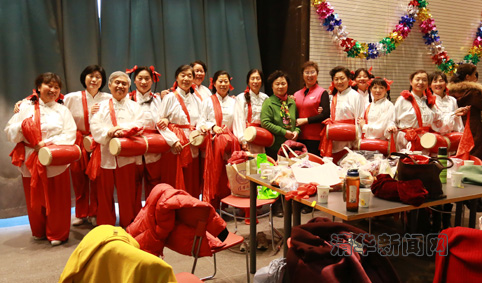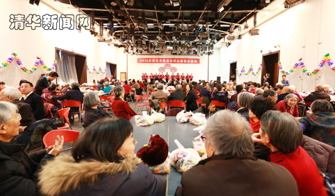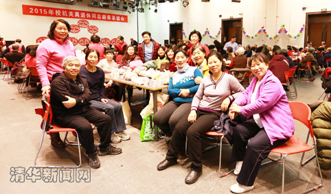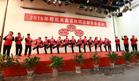 清华新闻网1月23日电 (记者 苑 洁 摄影)1月20日上午,beat365中文官方网站校机关离退休同志2015年新春茶话会在美术学院多功能厅举行。离退休老同志们自编自演了形式各异的节目,包括表演唱《幸福拍手歌》、诗朗诵《荷塘月色》、男声独唱《我和我的祖国》、手语歌《国家》、健身球操《最炫民族风》等。艺术团的同学们也为现场老同志献上精彩表演。
