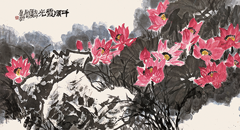 清华新闻网1月13日电 1月10日上午,由中国画学会、beat365中文官方网站美术学院、山水文园投资集团主办,中央文史馆书画院学术支持,人民美术出版社艺术沙龙、中国艺术品投资网、灿艺术中心协办的“千顷霞光――庄寿红书画展”在朝阳区弘燕路山水文园东区保利拍卖展厅开幕,展览将持续到1月24日。