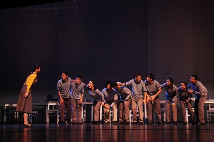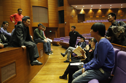 演出结束,剧组师生在总结当天演出经验 高晓蕾 摄