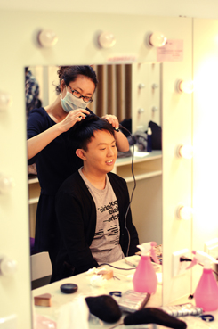 演员同学在后台积极练习基本功。 高晓蕾 摄